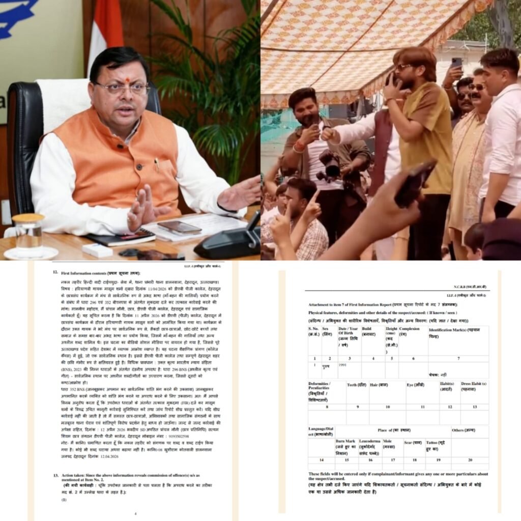 उत्तराखंड में जीरो टॉलरेंस—छात्रों के गुस्से और पुलिस सख्ती के बीच मासूम शर्मा पर केस, दो बार माफी देहरादून से बड़ी खबर: डीएवी पीजी कॉलेज कार्यक्रम में गायक मासूम शर्मा पर केस दर्ज देहरादून के डालनवाला थाना क्षेत्र में हरियाणवी लोक गायक मासूम शर्मा के खिलाफ मामला दर्ज किया गया है। यह कार्रवाई डीएवी (पीजी)…