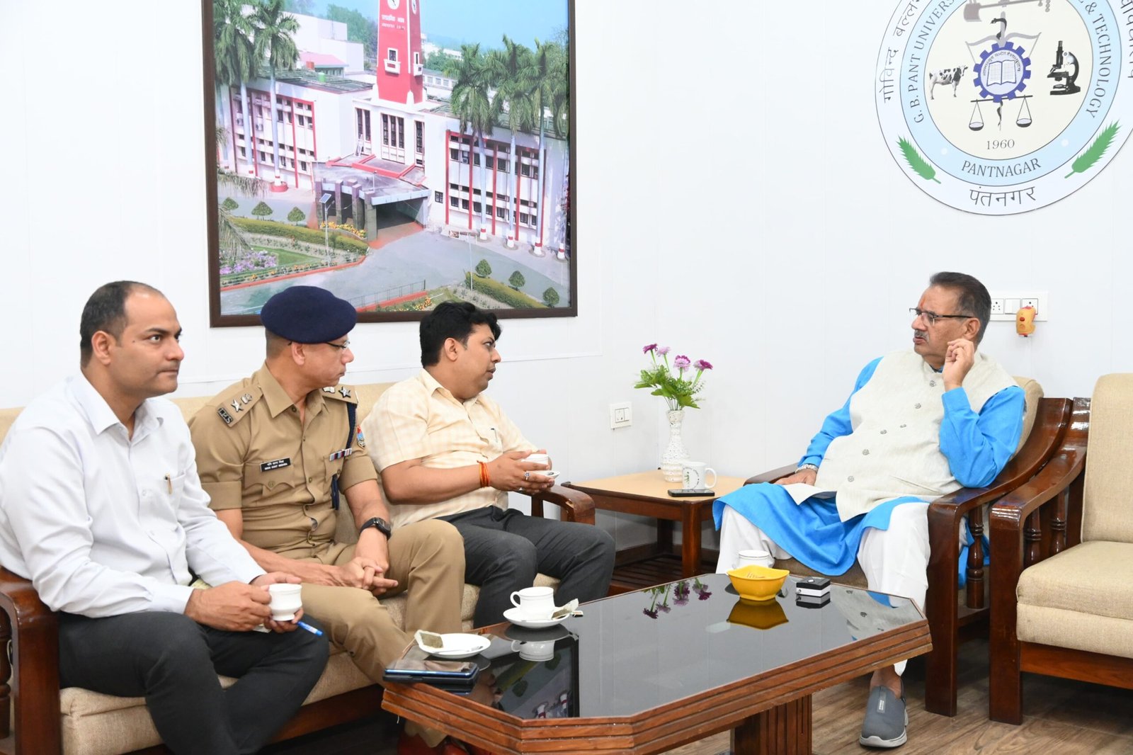 पंतनगर में जिलाधिकारी के साथ जनपद में सरकार द्वारा संचालित विकास कार्यों की समीक्षा करते कृषि मंत्री गणेश जोशी