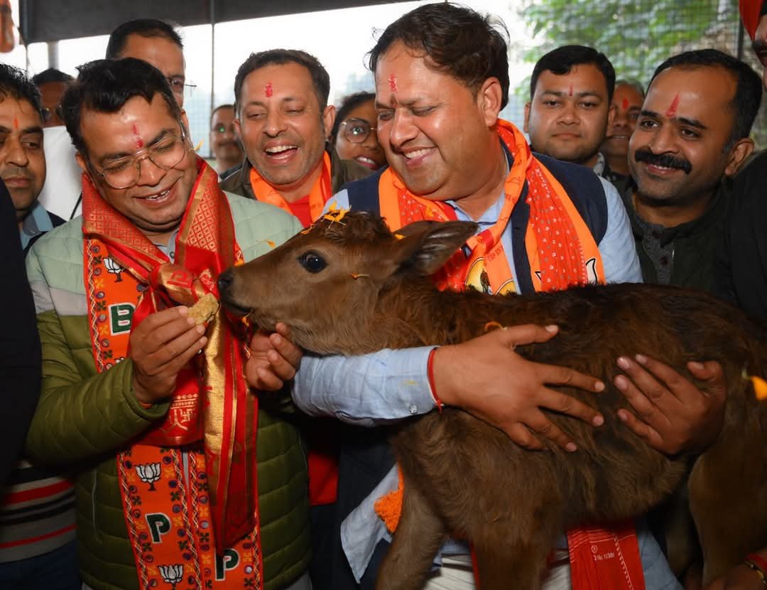 रूद्रपुर। जनसंपर्क अभियान के दौरान भाजपा मेयर प्रत्याशी विकास शर्मा ने ट्रेनिंग सेंटर में गौ रक्षा दल द्वारा आयोजित गौ पूजन कार्यक्रम में प्रतिभाग कर गौ पूजन किया। इस दौरान गौ रक्षा दल के सदस्यों न मेयर प्रत्याशी विकास शर्मा का समर्थन करते हुए जोरदार स्वागत किया और उन्हें जीत की अग्रिम बधाई। भाजपा प्रत्याशी ने विधायक शिव अरोरा सहित भाजपा नेताओं के साथ टेªनिंग सेंटर क्षेत्र में घर घर वोट भी मांगे।