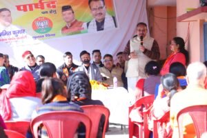 देहरादून,17 जनवरी। कैबिनेट मंत्री गणेश जोशी ने आज आगामी निकाय चुनाव के मद्देनजर देहरादून नगर निगम क्षेत्र के जाखन वार्ड 07 से भाजपा पार्षद प्रत्याशी अमित कुमार, विजयपुर वार्ड 02 से भाजपा पार्षद प्रत्याशी निर्मला थापा और राजपुर वार्ड-04 से भाजपा पार्षद प्रत्याशी अल्का कुल्हान और विजय कॉलोनी वार्ड 11 से भाजपा पार्षद प्रत्याशी भावना चौधरी के समर्थन में आयोजित जनसभाओं में प्रतिभाग कर क्षेत्र वासियों से आगामी 23 जनवरी को भाजपा के मेयर प्रत्याशी सौरभ थपलियाल और भाजपा पार्षद प्रत्याशियों के पक्ष में मतदान करने का निवेदन किया।। इस दौरान मेयर प्रत्याशी सौरभ थपलियाल भी जनसभा में उपस्थिति हुए और भाजपा के पक्ष में मतदान की अपील की।