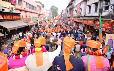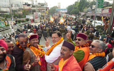 भाजपा महानगर कार्यालय से शुरू हुआ सीएम धामी का रोड शो परेड ग्राउंड, घंटाघर, पलटन बाजार होते हुए राजा रोड मेन रोड तिराहा में पहुंच संपन्न हुआ