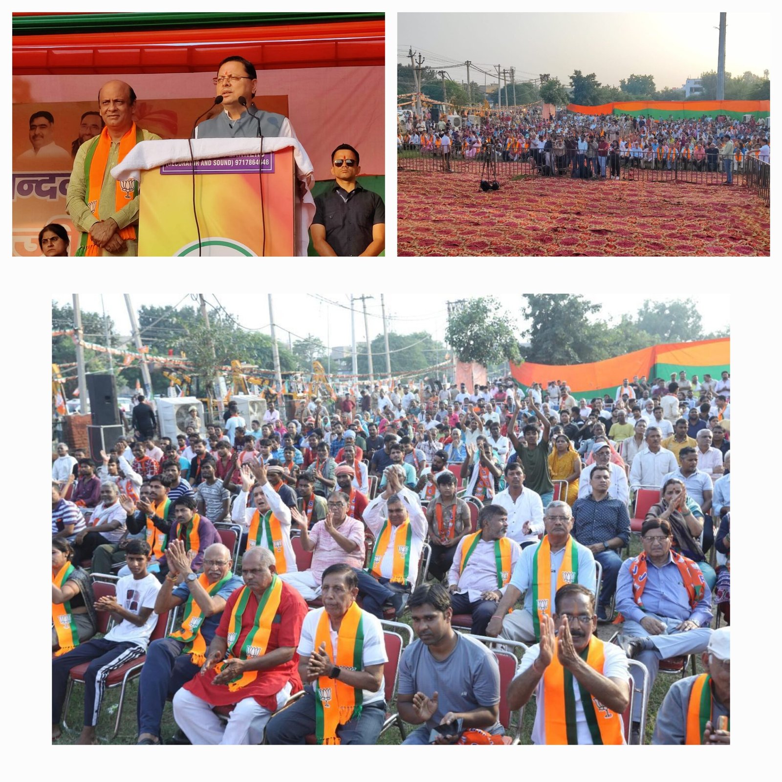मुख्यमंत्री धामी ने फरीदाबाद में भाजपा प्रत्याशी धनेश अदलखा के समर्थन में जनसभा को संबोधित किया