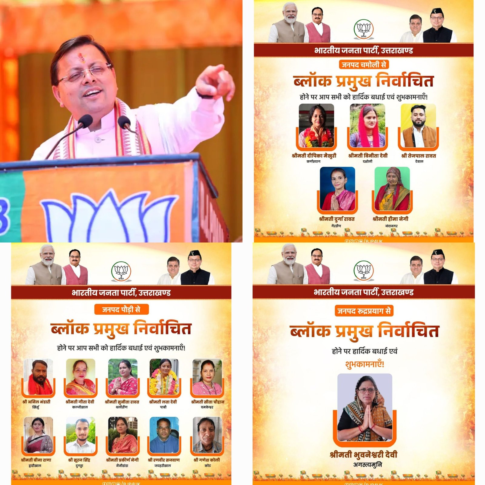 श्री भट्ट ने कहा कि देवभूमि की जनता का विश्वास भाजपा के साथ है। यह प्रधान, जिला पंचायत सदस्य और क्षेत्र पंचायत सदस्य के परिणाम से साबित हो गया था। हमारे कार्यकर्ता 85 फ़ीसदी से अधिक प्रधान पदों पर निर्वाचित हुए हैं। इसी तरह ब्लॉक प्रमुख की 70 फ़ीसदी से अधिक सीटें भाजपा उम्मीदवारों ने जीती है। वहीं अब तक सामने आए 11 जिला पंचायत अध्यक्ष के नतीजे में 10 भाजपा के पक्ष में आए हैं।