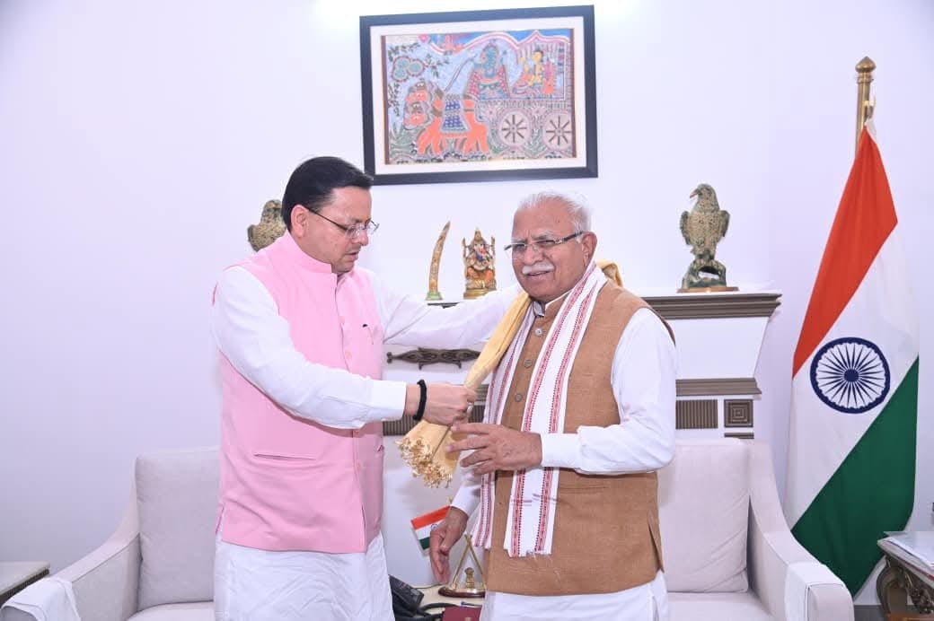 उत्तराखण्ड के मुख्यमंत्री श्री पुष्कर सिंह धामी ने आज नई दिल्ली में केंद्रीय विद्युत मंत्री श्री मनोहर लाल खट्टर से भेंट की और राज्य के लिए कई महत्वपूर्ण विषयों पर चर्चा की। मुख्यमंत्री ने ऋषिकेश, हरिद्वार और अन्य तीर्थ क्षेत्रों में आगामी कुंभ 2027 को ध्यान में रखते हुए बुनियादी ढांचे के विकास तथा आवास योजनाओं से जुड़े विषयों पर केंद्र सरकार से सहयोग का अनुरोध किया।