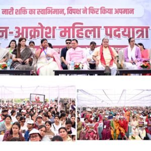 देहरादून के परेड ग्राउंड से आज एक जोरदार सियासी संदेश निकला, जहां आयोजित महिला जन आक्रोश रैली में उत्तराखंड के मुख्यमंत्री पुष्कर सिंह धामी अपने धाकड़ अंदाज में नजर आए। हजारों की संख्या में उमड़ी मातृशक्ति के बीच सीएम धामी ने कांग्रेस और उसके सहयोगी दलों पर सीधा और तीखा हमला बोला, नारी शक्ति वंदन अधिनियम के विरोध को लेकर कांग्रेस को कठघरे में खड़ा करते हुए इसे महिलाओं के अधिकारों के साथ अन्याय बताया।
