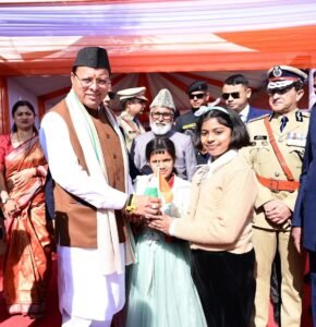 गणतंत्र दिवस के अवसर पर राज्यपाल लेफ्टिनेंट जनरल गुरमीत सिंह (से नि) ने सोमवार को परेड ग्राउंड में आयोजित गणतंत्र दिवस के मुख्य समारोह में राष्ट्रीय ध्वज फहराया और भव्य परेड की सलामी ली। कार्यक्रम में राज्यपाल लेफ्टिनेंट जनरल गुरमीत सिंह (से नि) और मुख्यमंत्री श्री पुष्कर सिंह धामी द्वारा उत्कृष्ट प्रदर्शन करने वाले पुलिस अधिकारियों को पदक अलंकरण कर सम्मानित किया गया साथ विभिन्न अधिकारियों को भी उनकी सराहनीय सेवाओं के लिए सम्मानित किया।