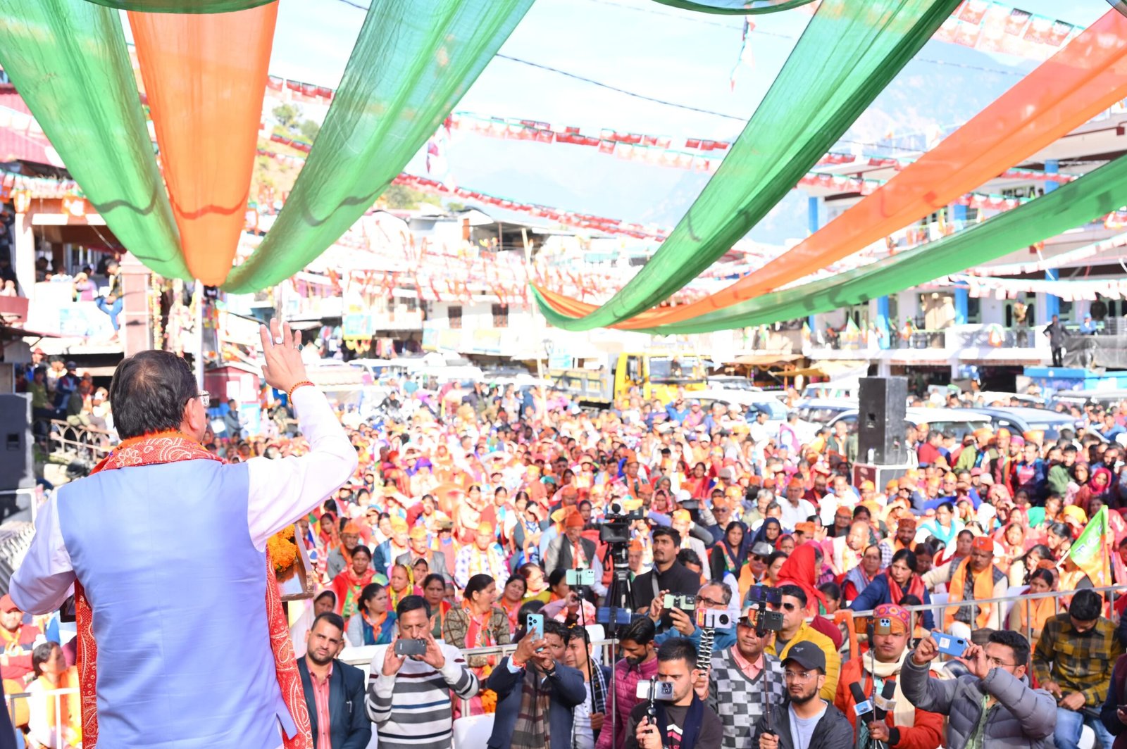 मुख्यमंत्री पुष्कर सिंह धामी ने सोमवार को गुप्तकाशी में केदारनाथ विधानसभा उपचुनाव में भाजपा प्रत्याशी श्रीमती आशा नौटियाल के पक्ष में आयोजित जनसभा को संबोधित किया।