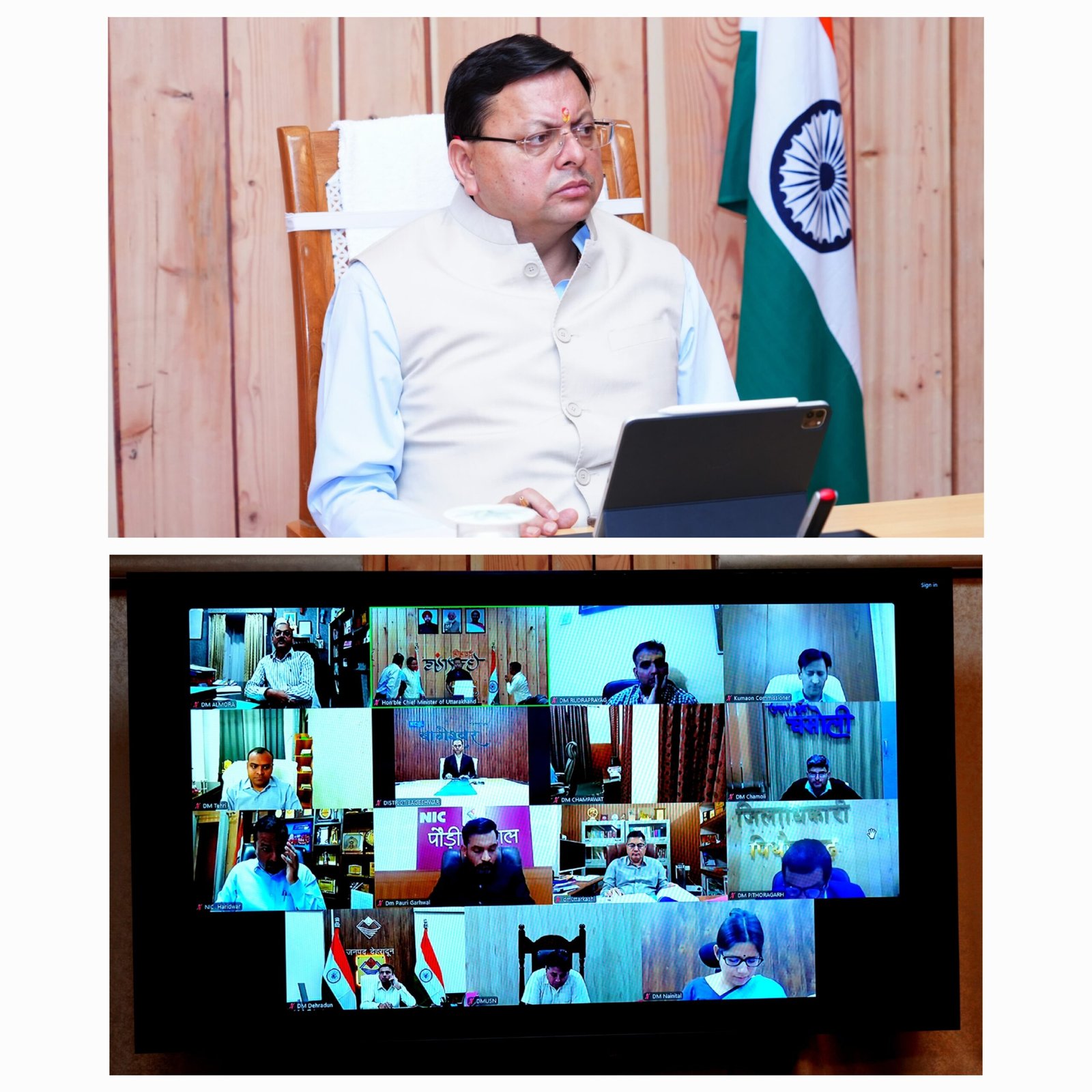 बैठक में प्रमुख सचिव श्री आर.के सुधांशु, श्री आर. मीनाक्षी सुदंरम, अपर पुलिस महानिदेशक श्री ए.पी. अंशुमन, गढ़वाल कमिश्नर श्री विनय शंकर पाण्डेय, वर्चुअल माध्यम से कुमांऊ कमिश्नर श्री दीपक रावत एवं सभी जिलाधिकारी उपस्थित थे।