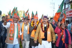 दिनांक 14 जनवरी 2025 को भाजपा महापौर प्रत्याशी सौरभ थपलियाल ने डोईवाला विधायक बृजभूषण गैरोला जी के नेतृत्व में डोईवाला क्षेत्र के 6 नंबर पुलिया माता वैष्णो देवी मंदिर से जोगीवाला चौक होते हुए कुआं वाला तक साथ ही भारत चौक होते हुए गुजरोंवाली तक विभिन्न वार्डों में भ्रमण व रोड शो किए।