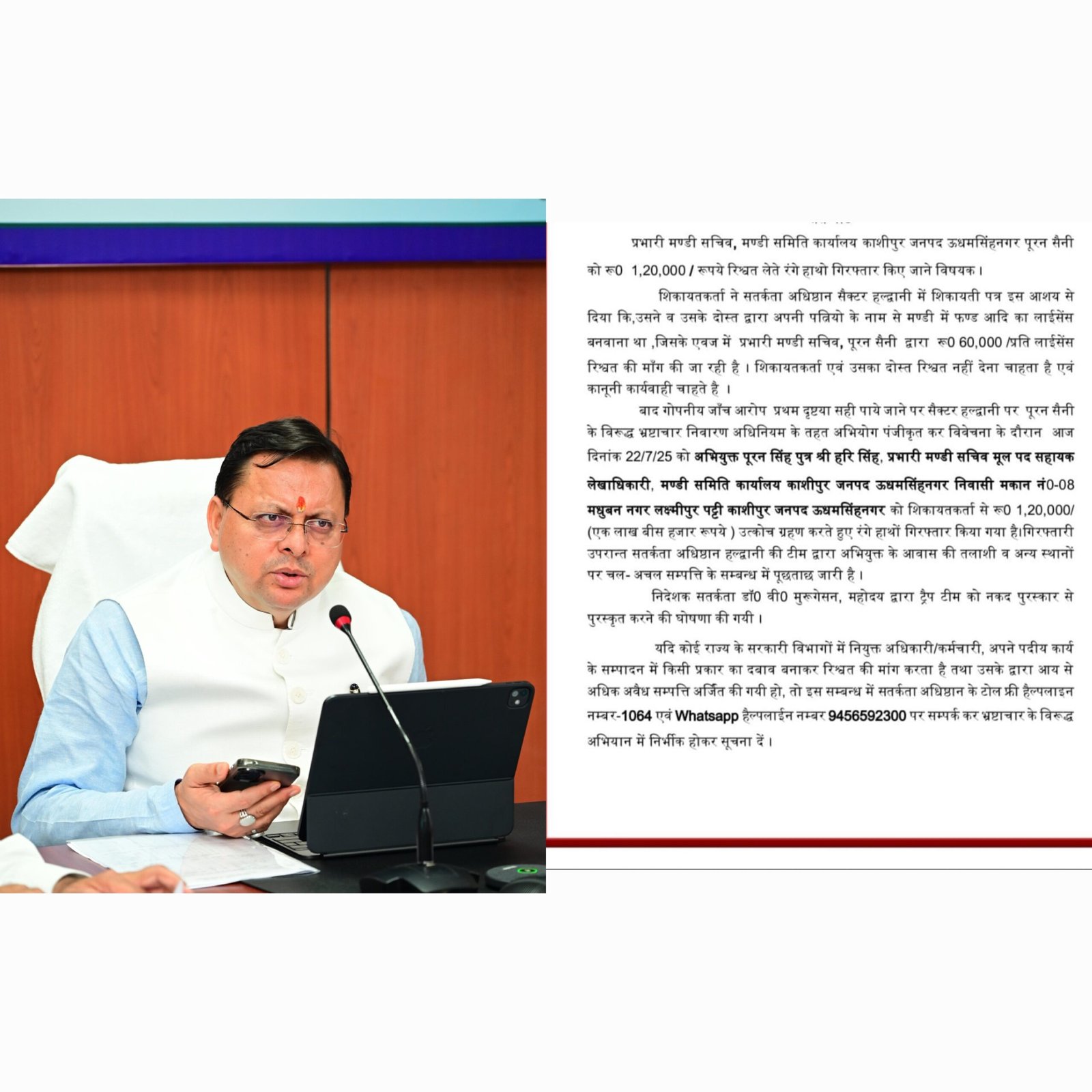 भ्रष्टाचार मुक्त उत्तराखंड की मुहिम में मुख्यमंत्री धामी को बड़ी सफलता, मंडी सचिव रिश्वत लेते पकड़ा गया