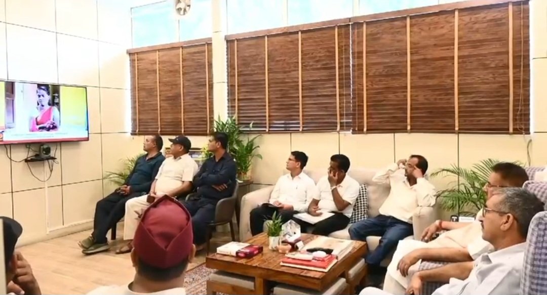 प्रधानमंत्री नरेंद्र मोदी के मासिक रेडियो कार्यक्रम “मन की बात” के 111वां संस्करण को पार्टी कार्यकर्ताओं के साथ सुनते कैबिनेट मंत्री गणेश जोशी