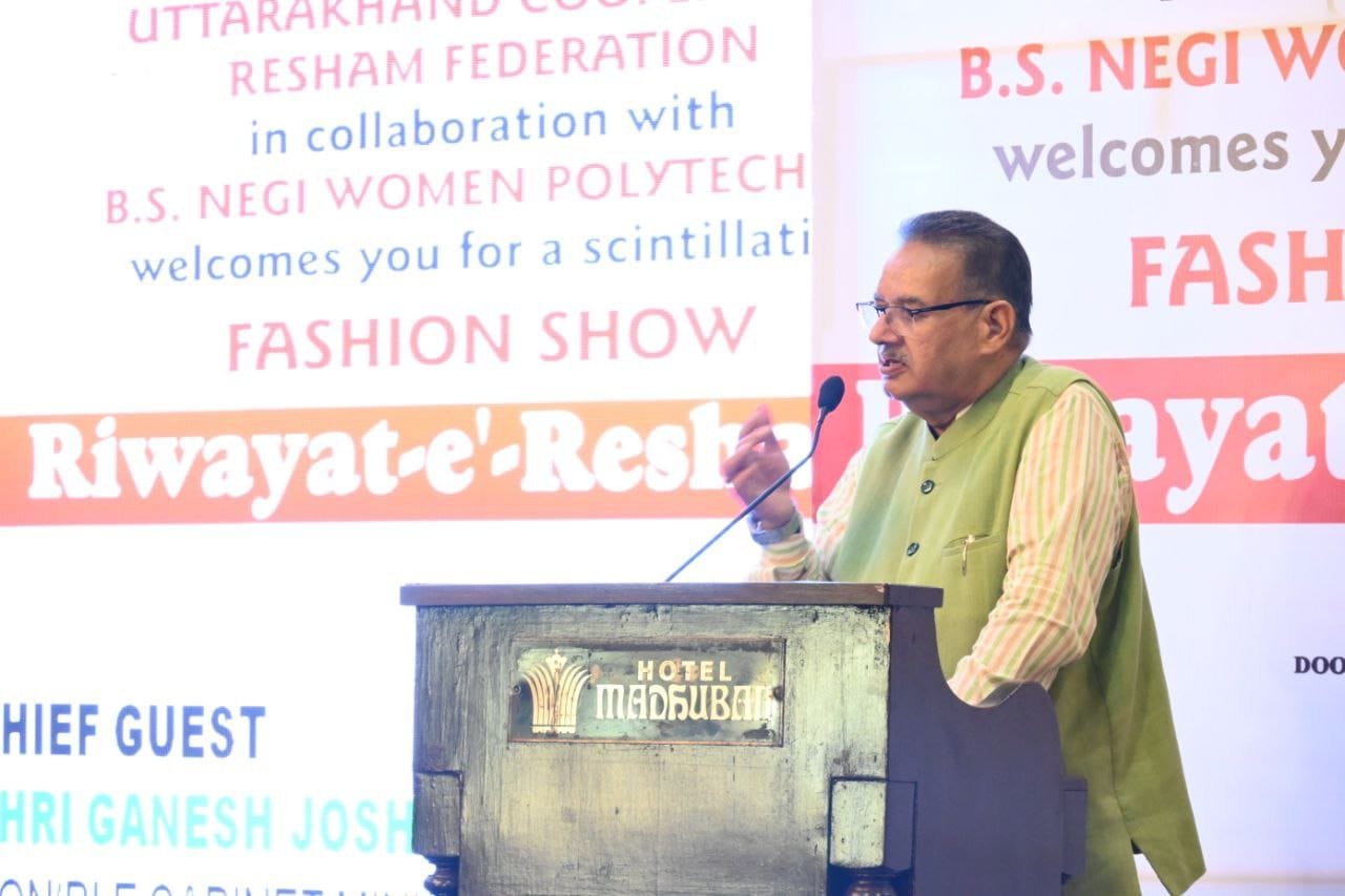 मंत्री जोशी ने कहा कि रेशम फेडरेशन का “दून सिल्क ब्रांड” अब राष्ट्रीय स्तर पर अपनी पहचान बना चुका है। विगत वर्ष लगभग 5 करोड़ मूल्य के रेशमी वस्त्रों का उत्पादन कर फेडरेशन ने 1 करोड़ का लाभ अर्जित किया उन्होंने सिल्क एक्स्पो के दौरान रेशम निदेशालय और बी.एस. नेगी महिला प्राविधिक प्रशिक्षण संस्थान, ओएनजीसी की बालिकाओं द्वारा प्रस्तुत भव्य फैशन शो “रिवायत-ए-रेशम-2” को भी मंत्री ने सराहा। उन्होंने कहा कि यह कार्यक्रम संस्थानों की आपसी सहभागिता का उदाहरण है, जिससे एक ओर छात्राओं को अपनी प्रतिभा दिखाने का अवसर मिल रहा है, वहीं दूसरी ओर दून सिल्क ब्रांड का भी प्रभावी प्रमोशन संभव हो पा रहा है। इस दौरान मंत्री गणेश जोशी ने रेशम कीट पालन में उत्कृष्ट कार्य करने वाले कर्मचारियों को भी सम्मानित किया।