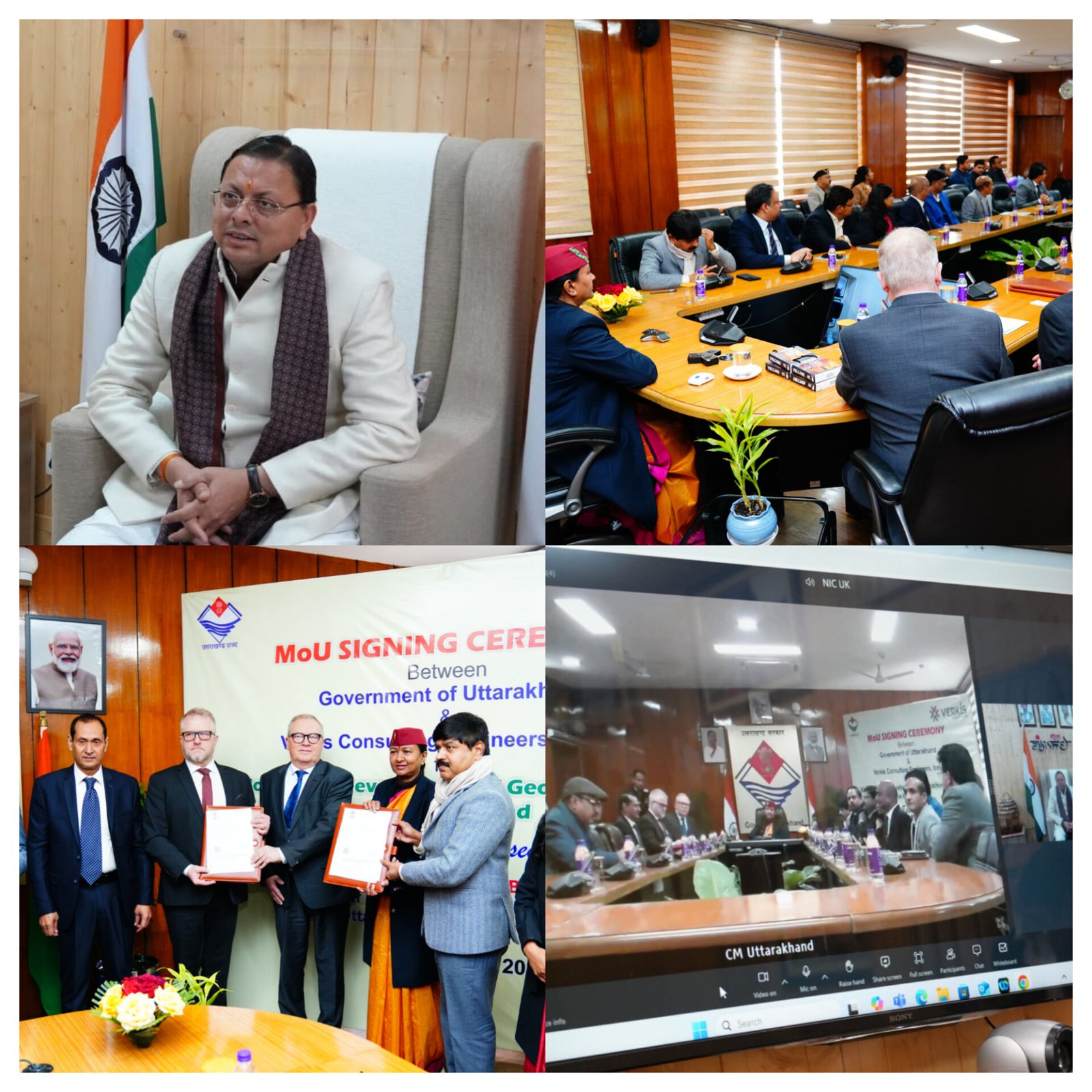 उत्तराखंड सरकार और आइसलैंड की कंपनी वर्किस कंसलटिंग इंजिनियर्स के मध्य सचिवालय में मुख्यमंत्री धामी और आइसलैंड के राजदूत डॉ. बेनेडिक्ट हॉस्कुलसन की गरिमामय उपस्थिति में *उत्तराखंड में भूतापीय ऊर्जा के अन्वेषण और विकास* के संबंध में समझौता संपन्न हुआ।