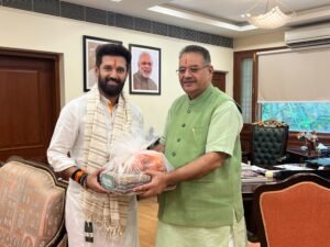 मंत्री गणेश जोशी ने केंद्रीय मंत्री चिराग पासवान को उत्तराखंड के जैविक उत्पादों से निर्मित किट और रेशम से निर्मित शॉल भेंट की