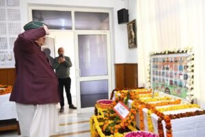 पुलवामा हमले की छठवीं बरसी पर श्रद्धांजलि सभा में वीर शहीदों को श्रद्धासुमन अर्पित करते सैनिक कल्याण मंत्री गणेश जोशी