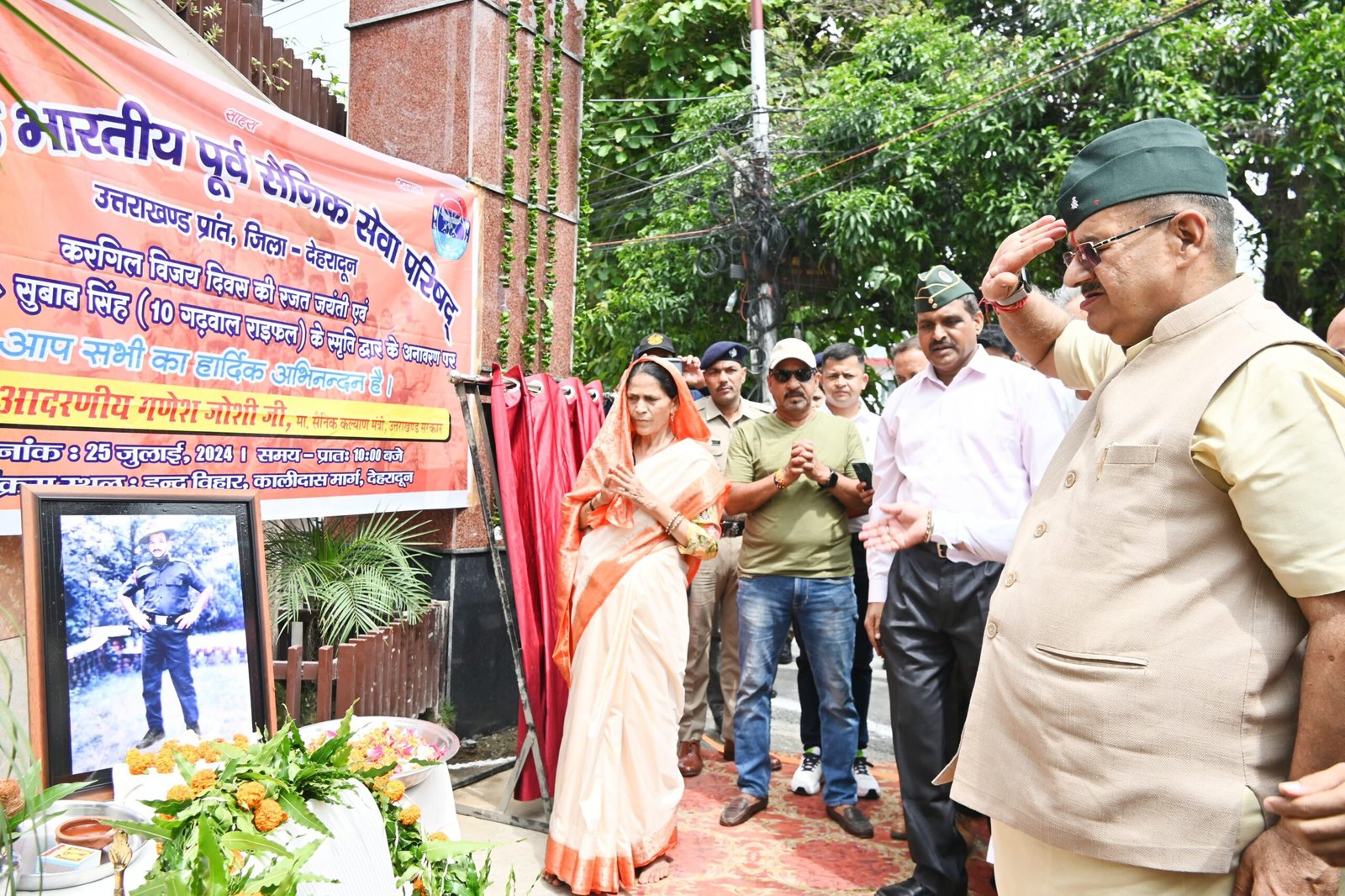 सैनिक कल्याण मंत्री गणेश जोशी ने गुरुवार को देहरादून में अमर शहीद हवलदार सुबाब सिंह सजवाण की स्मृति में निर्मित शहीद द्वार का अनावरण किया