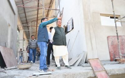 गढ़ी कैंट में निर्माणाधीन सामुदायिक भवन का निरीक्षण करते कैबिनेट मंत्री गणेश जोशी