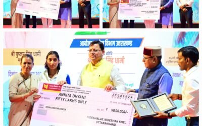 मुख्यमंत्री ने पेरिस ओलंपिक 2024 में प्रतिभाग करने वाले उत्तराखंड के 4 खिलाड़ियों ( लक्ष्य सेन, परमजीत सिंह, सूरज पंवार, अंकिता ध्यानी ) को 50 – 50 लाख की धनराशि के चेक प्रदान किये