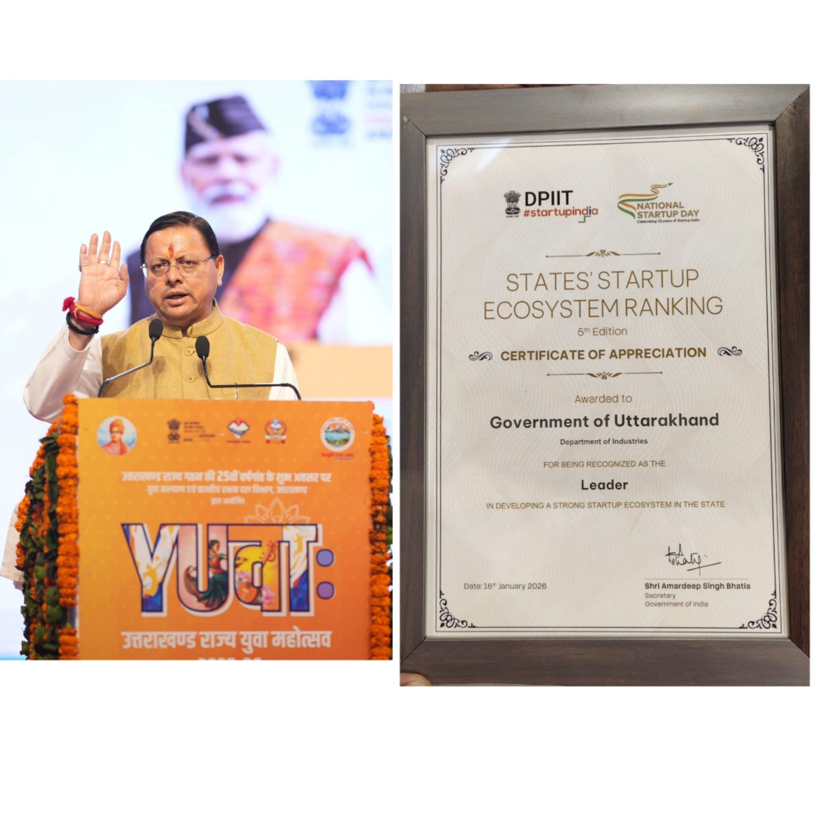 *यह सम्मान उत्तराखण्ड के लिए गर्व का विषय है। हमारी सरकार ने स्टार्टअप को बढ़ावा देने के लिए अनुकूल नीतियां, सरल प्रक्रियाएं और मजबूत इकोसिस्टम विकसित किया है। राज्य के युवाओं में नवाचार की अद्भुत क्षमता है और सरकार हर स्तर पर उन्हें सहयोग प्रदान कर रही है। यह उपलब्धि प्रदेश के सभी उद्यमियों, स्टार्टअप्स और अधिकारियों के सामूहिक प्रयास का परिणाम है।*