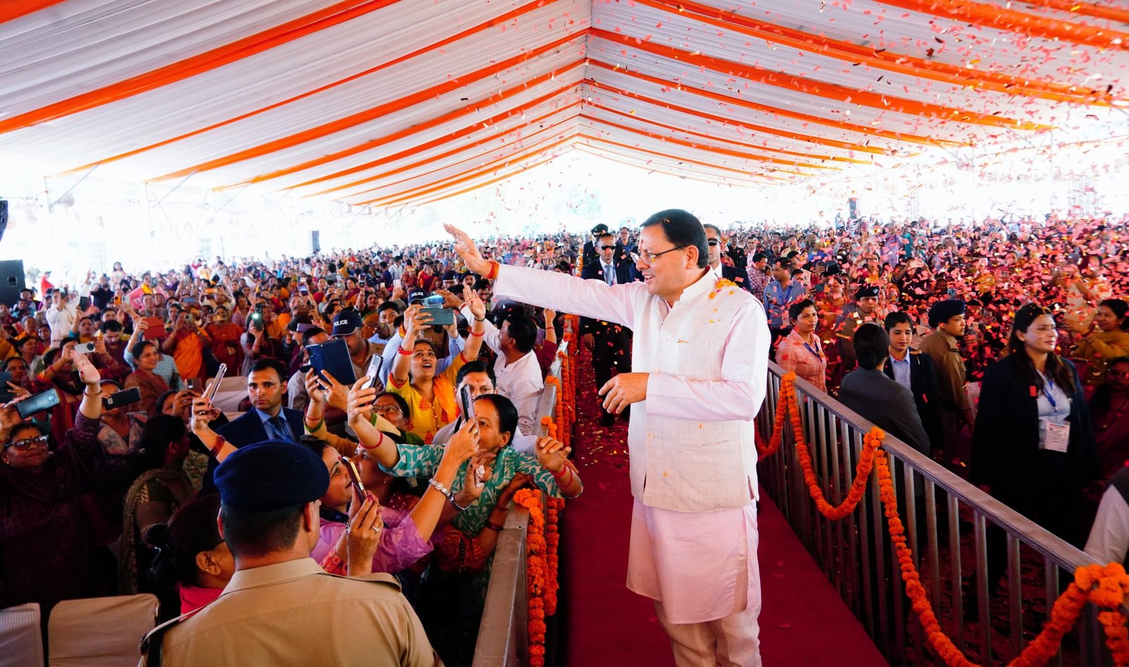उन्होंने कहा कि देवभूमि से समान नागरिक संहिता की पवित्र गंगा प्रवाहित होने से पूरे देश में नई ऊर्जा और उत्साह का संचार हुआ है। उन्होंने अपने संबोधन में नकल विरोधी कानून का जिक्र करते हुए कहा कि इसके सकारात्मक परिणाम सामने आ रहे हैं। दंगा और धर्मांतरण विरोधी कानूनों की भी चर्चा की। भू-कानून के संबंध में उन्होंने कहा कि इससे देवभूमि की इस पुण्य धरा को भू-माफियाओं से बचाया जा सकेगा। उन्होंने कहा कि हमने जनता से जो वायदे किए, उन्हें पूरा किया। अब तक हम 2022 में जारी अपने दृष्टि पत्र के करीब 70 प्रतिशत से अधिक वादों को धरातल पर उतारने में सफल रहे हैं। अन्य वादे भी जल्द पूरे कर लिए जाएंगे।